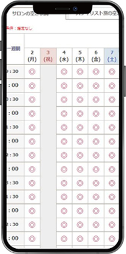 お客様がカレンダーから空いている日時を1タップで選択可能。直感的な操作で予約をスムーズに受け付けることができ、店舗スタッフの業務負担を大幅に軽減します。効率的な予約管理で、より良いサービス提供を実現します。