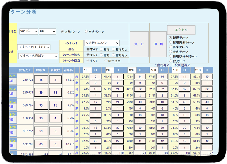 サロンの独自のニーズに応じた柔軟なデータ抽出とカスタム分析を提供します。詳細な設定が可能で、経営戦略に役立つ具体的なデータを効率的に活用できます。