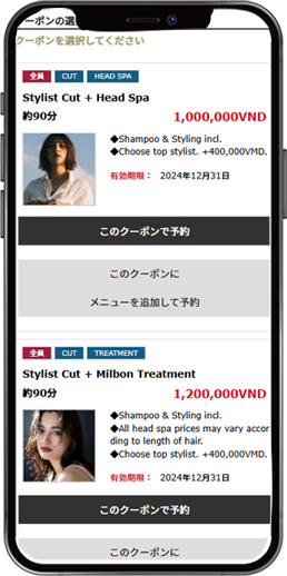 リピート促進やイベントに合わせて欠かせないクーポン機能を手軽に作成可能作成できます。また、利用もとても簡単です。予約時にクーポン選んでクーポンを利用した予約がスムーズにできます。