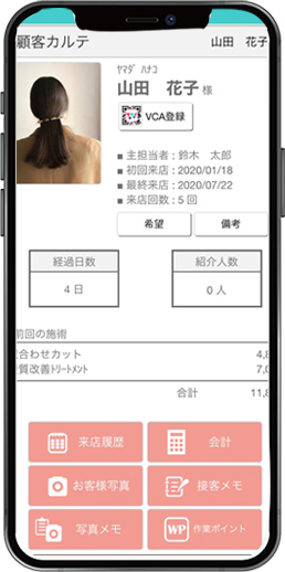 カルテ機能でお客様の施術履歴や好みを一元管理。きめ細やかなサービス提供が可能となり、リピート率の向上に繋がります。