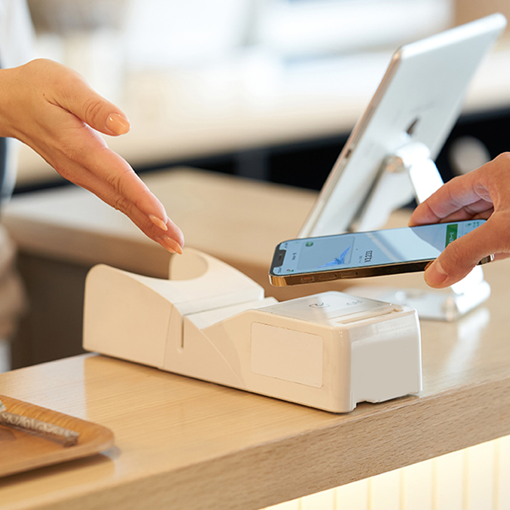 美容業界初!POSと連動したセルフレジです。現金・クレジット・電子マネー・QR決済まで全ての決済手段に対応しています。筐体のカラーはサロンの内装・運用に合わせて導入いただけるようなバリエーションがあります。